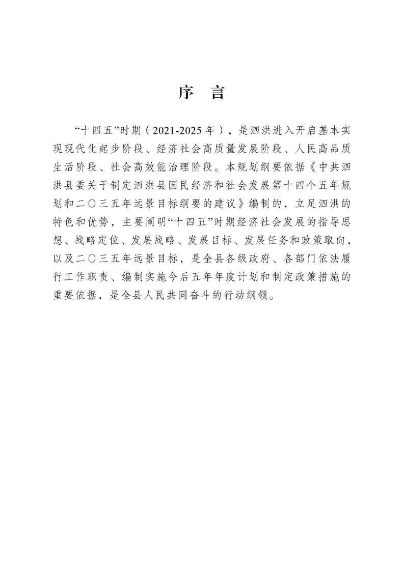 泗洪縣國民經濟和社會發展第十四個五年規劃綱要