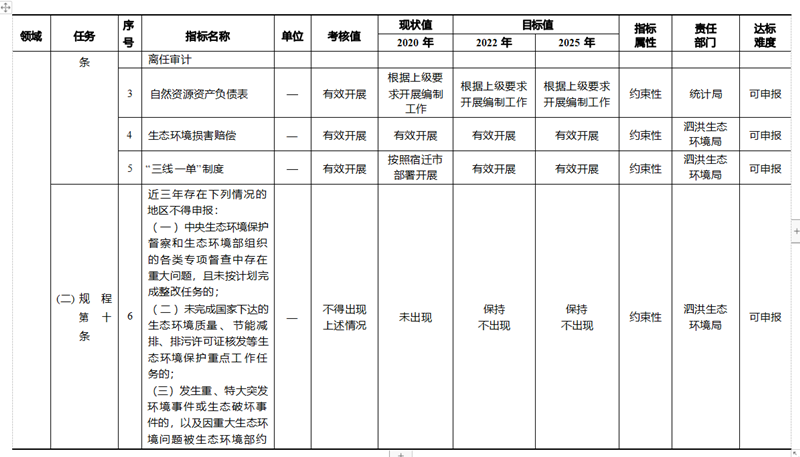 全面履行法定職責。黨政領導干部生態環境損害責任追究、領導干部自然資源資產離任審計、自然資源資產負債表、生態環境損害賠 償、“ 三線一單” 等制度保障工作嚴格按照國家和省級總體部署有效開 展?!?十三五” 時期,全縣未發生因重大生態環境問題被生態環境部約談、掛牌督辦和實施區域限批的情況。