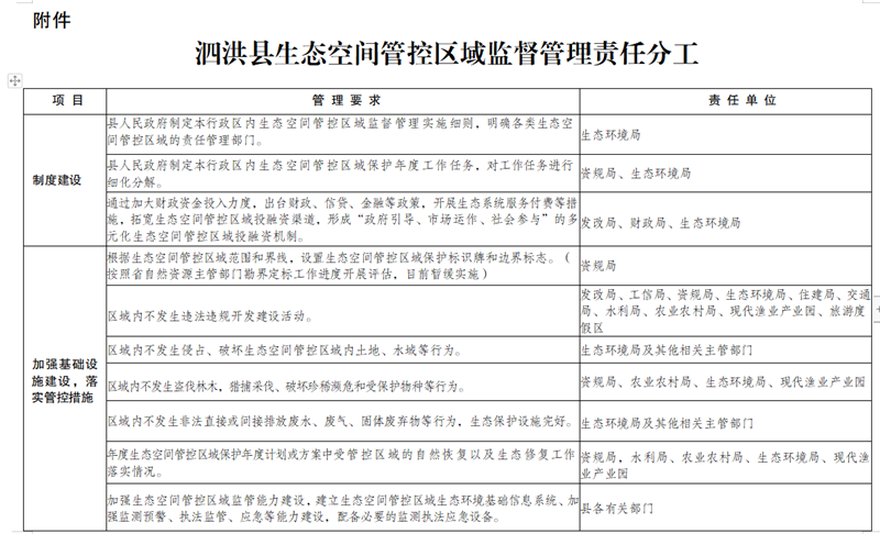 附件:泗洪縣生態(tài)空間管控區(qū)域監(jiān)督管理責(zé)任分工