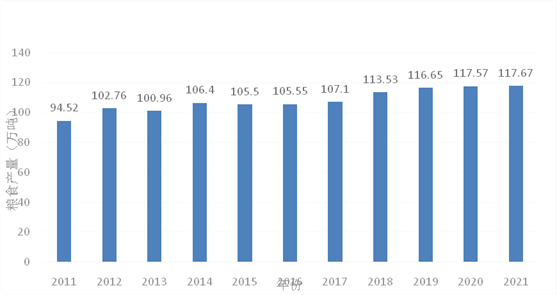 糧食作物穩(wěn)產豐收。全年糧食作物播種面積268.69萬畝,糧食總產117.67萬噸,其中夏糧總產49.40萬噸,比上年多0.23萬噸,秋糧68.27萬噸,比上年少0.13萬噸;糧食單產437.94公斤/畝,比上年少0.64公斤。