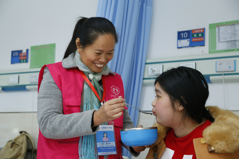 為了一條小生命能夠新生。朱婷婷,泗洪縣雙溝鎮一名貧困患兒,因膽道閉鎖無錢手術導致肝功能嚴重受損向愛心志愿者協會求助。滿少萍邊聯系上海兒童醫學研究中心咨詢治療方案,邊策劃舉辦募捐活動。她和團隊成員冒著37度的高溫舉辦了大型義演義賣募捐活動,用近18個小時籌集了大部分的手術費用,活動結束后她因中暑加多日勞累暈倒在回家的路上。在醫院輸液過程中,她疲憊的臉上卻洋溢幸福笑容,朱婷婷從受理到肝臟移植僅用了22天!