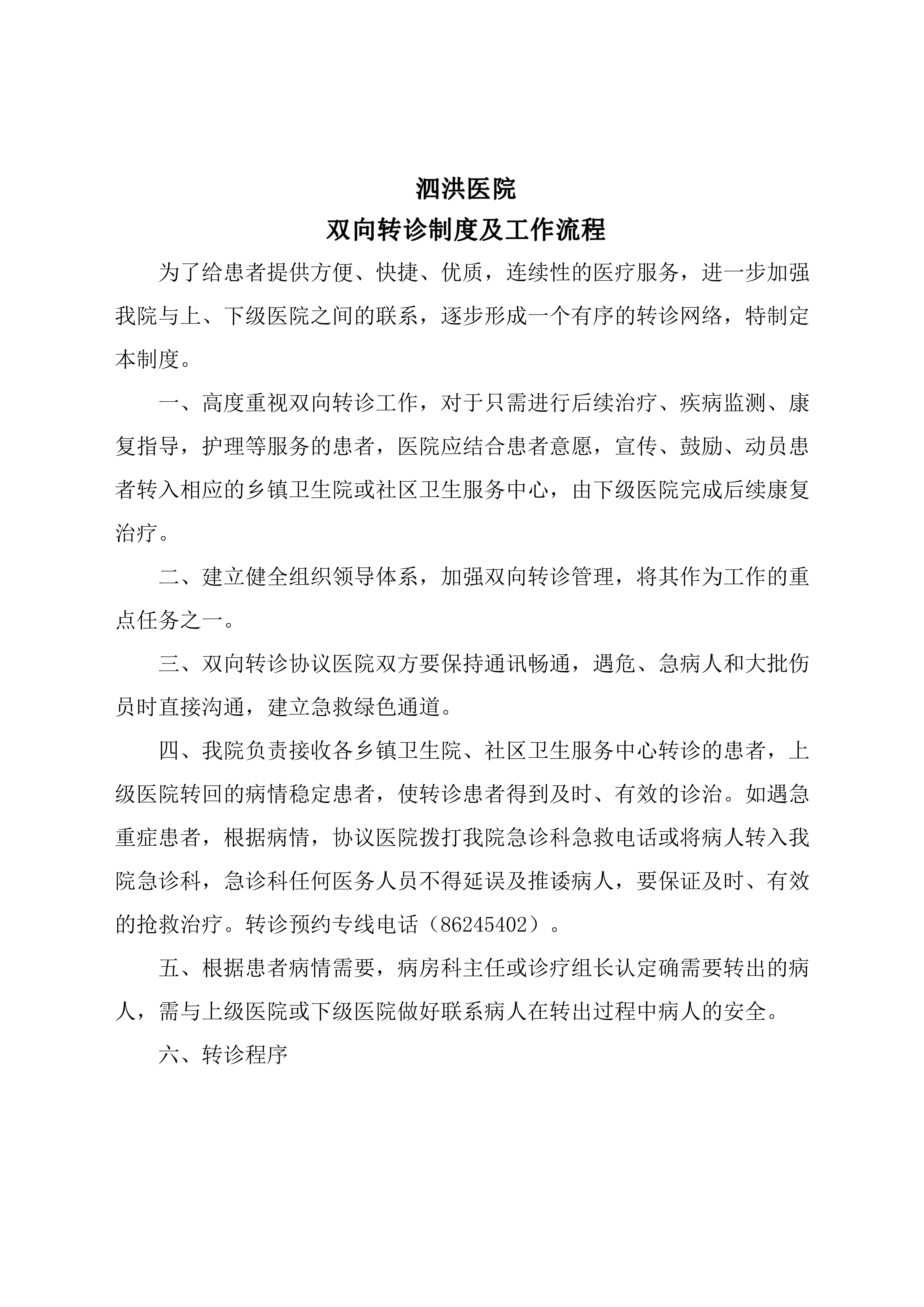 泗洪醫院雙向轉診服務內容、機構、流程、聯系方式