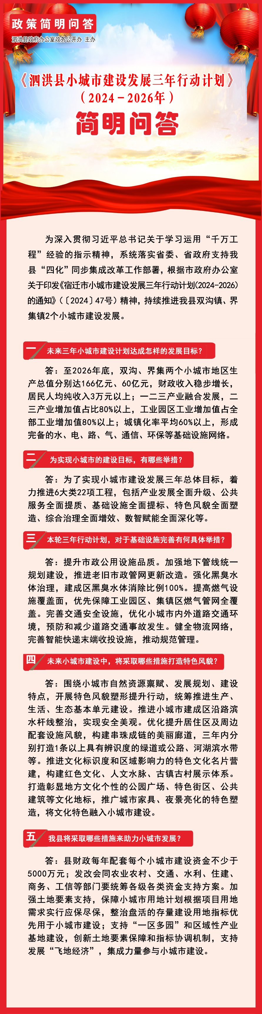 【政策簡(jiǎn)明問(wèn)答】泗洪縣小城市建設(shè)發(fā)展三年行動(dòng)計(jì)劃(2024-2026年)