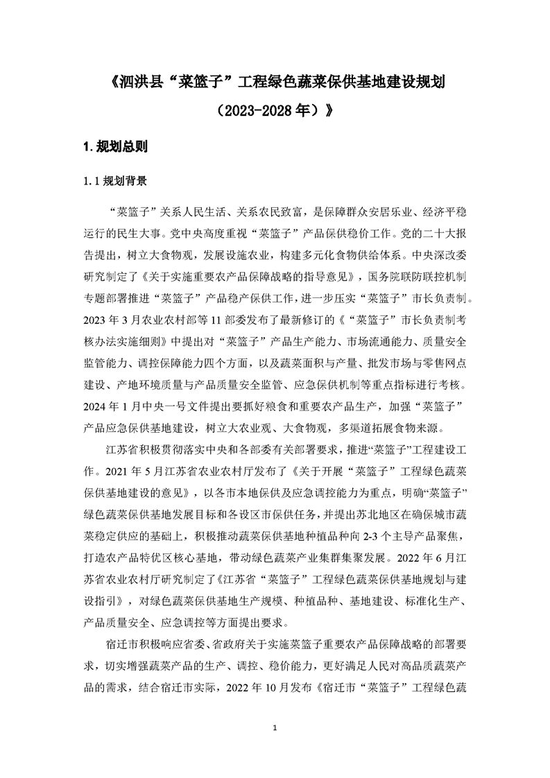 泗洪縣“菜籃子”工程綠色蔬菜保供基地建設規劃(2023-2028年)